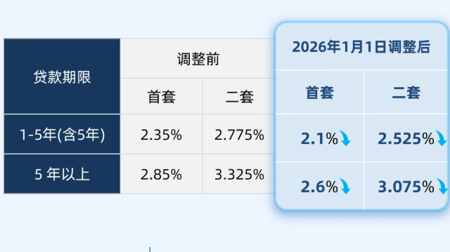 根据通知规定,2025年5月8日前发放的未到期个人住房公积金贷款,自2026年1月1日起,将执行调整后利率。调整后,5年以下(含5年)和5年以上首套个人住房公积金贷款利率分别为2.1%和2.6%,5年以下(含5年)和5年以上第二套个人住房公积金贷款利率分别为2.525%和3.075%。本市将于2026年1月1日起统一批量下调,无需借款人申请。